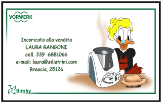 Biglietto da visita realizzato per una venditrice con il prodotto realizzato in stile cartoon ed i contatti della presentatrice |