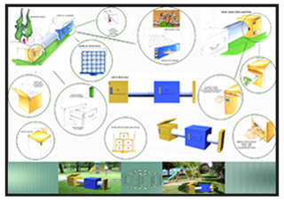 Panchine per bambini Progetto della toysbench, panchina realizzata per far giocare i bambini al parco con un meccanismo di apertura di cassetti contenenti puzzle, pezzi ad incastro etc. I cassetti si aprono solo se si inseriscono i soldi e solo se si ripongono tutti i pezzi del gioco la panchina li restituisce |