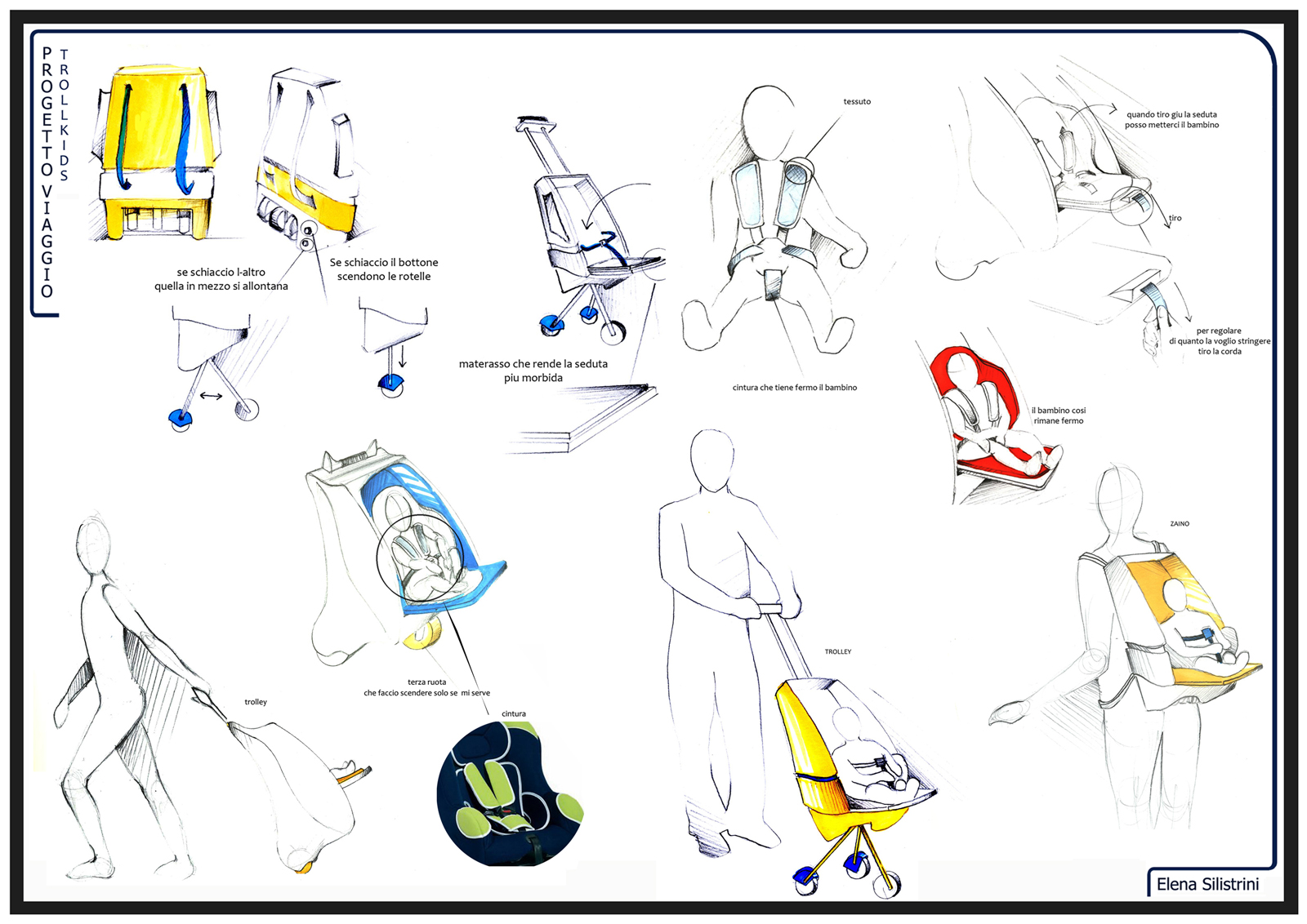 Trollkids Progetto di uno zaino/passeggino creato per i viaggi lunghi dove non sempre è possibile portare il bambino in spalle, con questa soluzione dove non è possibile spingere il bambino il passeggino si trasforma in zaino, in questo modo si può procedere nel viaggio senza intoppi. |